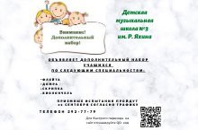 28 августа объявлен дополнительный набор по специальностям: скрипка, виолончель, баян, домра.