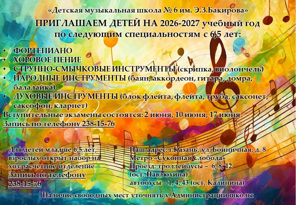 Муниципальное бюджетное учреждение дополнительного образования "Детская музыкальная школа № 6 им. Э.З.Бакирова" г.Казани