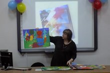 Гостей праздника следовало кратко ознакомить с главными героями презентуемой книги – учащимися и педагогами школы, создателями книги. Предложенный ролик прекрасно справился с этой задачей. Яркий, содержательный фильм о художественной школе за пару минут ознакомил зрителей с руководством, педагогами школы, каждый из которых выразил свое отношение к народным традициям, о процессе выполнения детьми поставленной в проекте задачи. С экрана гости услышали и мнение детей, даже 6-ти летние малыши, только приступившие к обучению в школе с 80-ти летней историей, выразили как-бы хором (в разнобой): «нам здесь очень нравится учиться рисовать!».