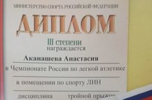 АКАНАШЕВА АНАСТАСИЯ (тренеры: Барышниковы Л.Н., А.С.) заняла 3 место в тройном прыжке и 7 место на дистанции 60м.