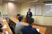 Старший инспектор отдельного батальона патрульно-постовой службы полиции отдела полиции на метрополитене Управления РФ по г. Казани капитан полиции Вагизов Руслан Рафаэлевич рассказал студентам о специфике работы транспортных полицейских, об истории создания транспортной полиции, сотрудниках, погибших при исполнении служебных обязанностей и награжденных государственными наградами.