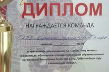 22 января 2018 года (г.Альметьевск) состоялись финальные соревнования по настольному теннису в рамках спартакиады ПОО РТ. Команда колледжа в составе: Герасимов А., Гафуров А., Каюмов А. заняли 3 место. Поздравляем спортсменов и тренера команды Мартынова В.В. с успешным выступлением.