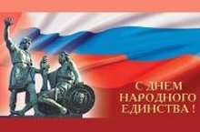 От всей души поздравляю вас с Днем народного единства!День народного единства – праздник, символизирующий патриотизм, духовную общность и сплоченность нашего народа. Не раз на долю России выпадали суровые испытания, но сила гражданского единения и патриотизм россиян помогали выстоять и добиться нового развития страны. В наши дни именно на идее народного единства, связывающей прошлое и настоящее и дающей основу для прочного будущего, должны укрепляться принципы современного демократического государства. Желаю Вам в этот светлый день жизненного оптимизма, уверенности в своих силах и возможностях, семейного благополучия, добра и мира, успехов во всех начинаниях на благо нашей Родины!