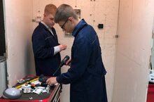 Продолжается обучение студентов в рамках Гранта на обучение от МООО "РСО" по рабочим специальностям "Электромонтажник по освещению и осветительным сетям" и "Электромонтер по ремонту и обслуживанию электрооборудования", а точнее занятия по практической части.