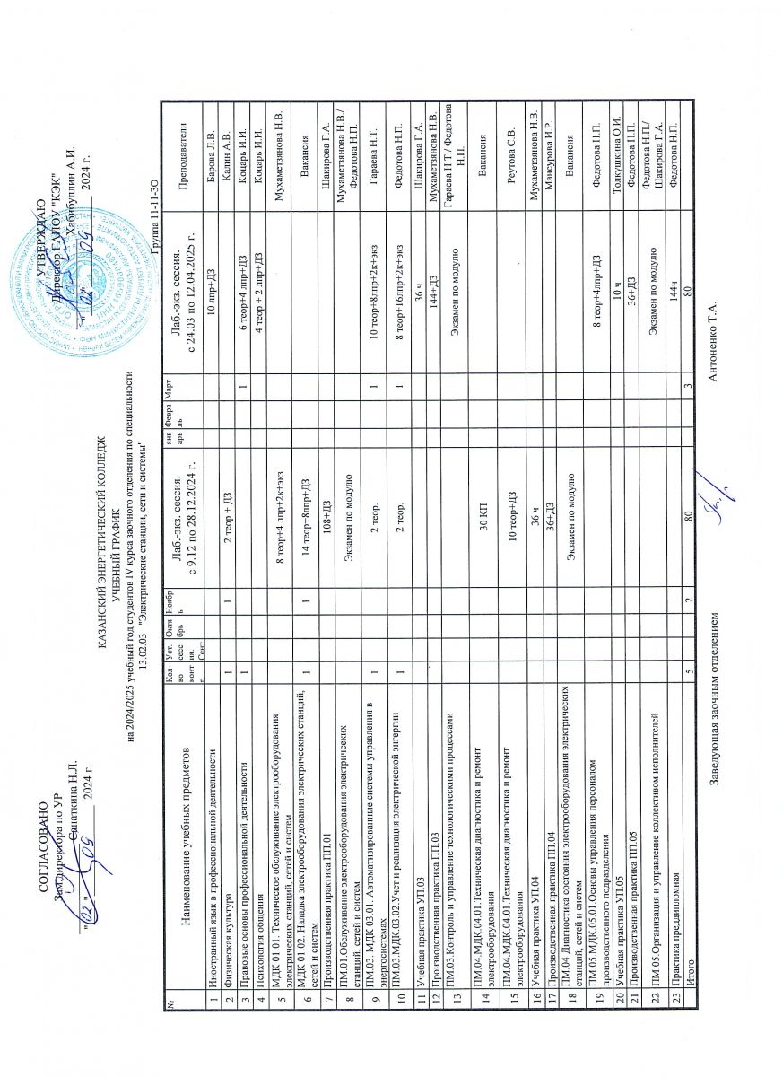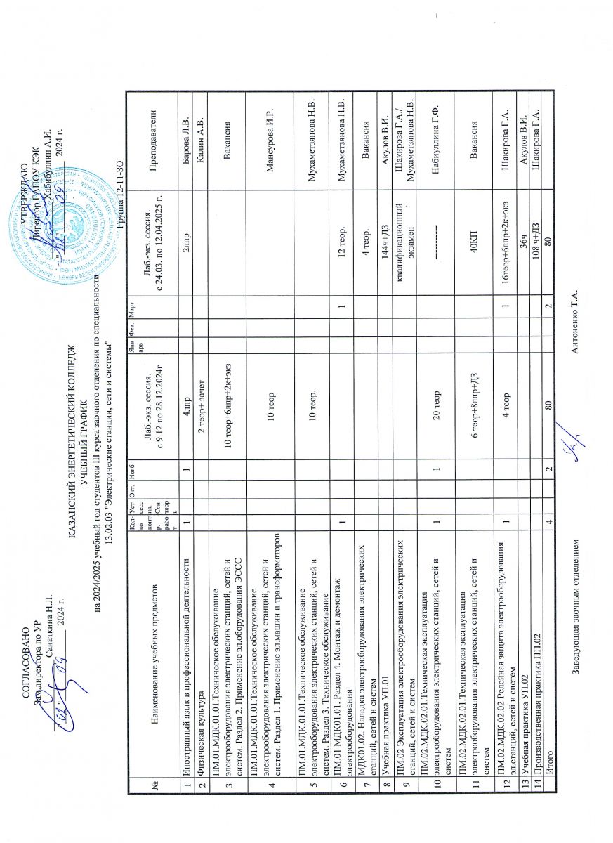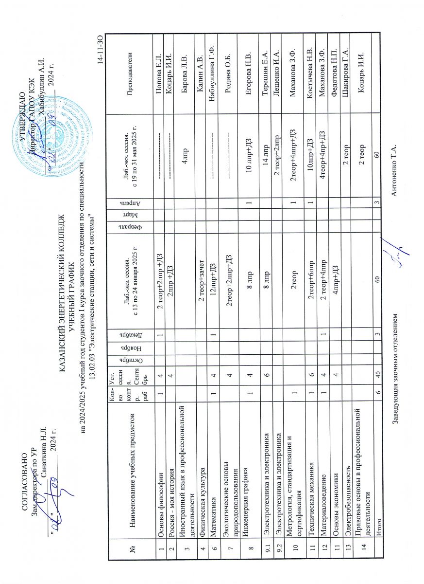 УЧЕБНЫЙ ГРАФИК на 2024/2025 учебный год студентов III курса заочного отделения