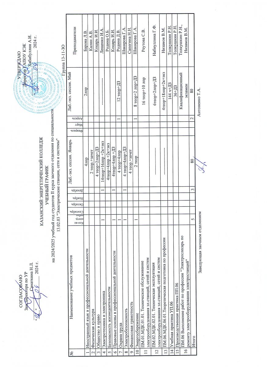 УЧЕБНЫЙ ГРАФИК на 2024/2025 учебный год студентов II курса заочного отделения