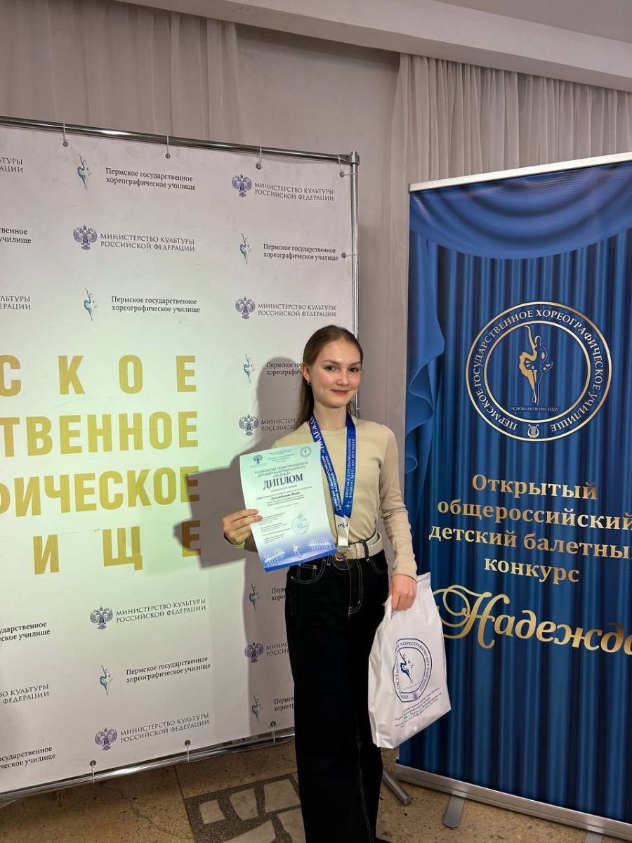 С радостью поздравляем нашу талантливую учащуюся 5/9 класса, Хуснутдинову Анису, с заслуженной победой! Она стала Лауреатом III степени на VI Открытом общероссийском детском балетном конкурсе «Надежда» в г. Пермь. Это огромный успех, который стал возможен благодаря её упорству, труду и безграничной любви к искусству танца.