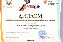 Наша Студентка Хасанова Резида Рифовна стала победителем заочного тура по решению жюри V Межрегионального конкурса молодых дизайнеров в рамках Межрегионального молодежного проекта «ЭтноДар».