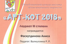 Прошёл Первый Республиканский конкурс детско-юношеского художественного творчества «Арт-Кот» -2018, направленный на выявление и поддержку одаренных детей и юношества в области изобразительного творчества. Конкурс проходил в 2 этапа