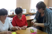 В ходе выставки делегаты смогли не просто познакомиться с национальными костюмами, но и сами попробовали изготовить предметы с национальным колоритом.