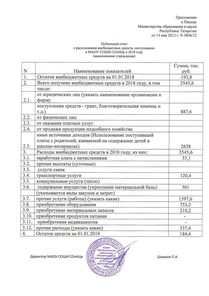 - Отчет о привлечении и расходовании внебюджетных средств за 2018 год