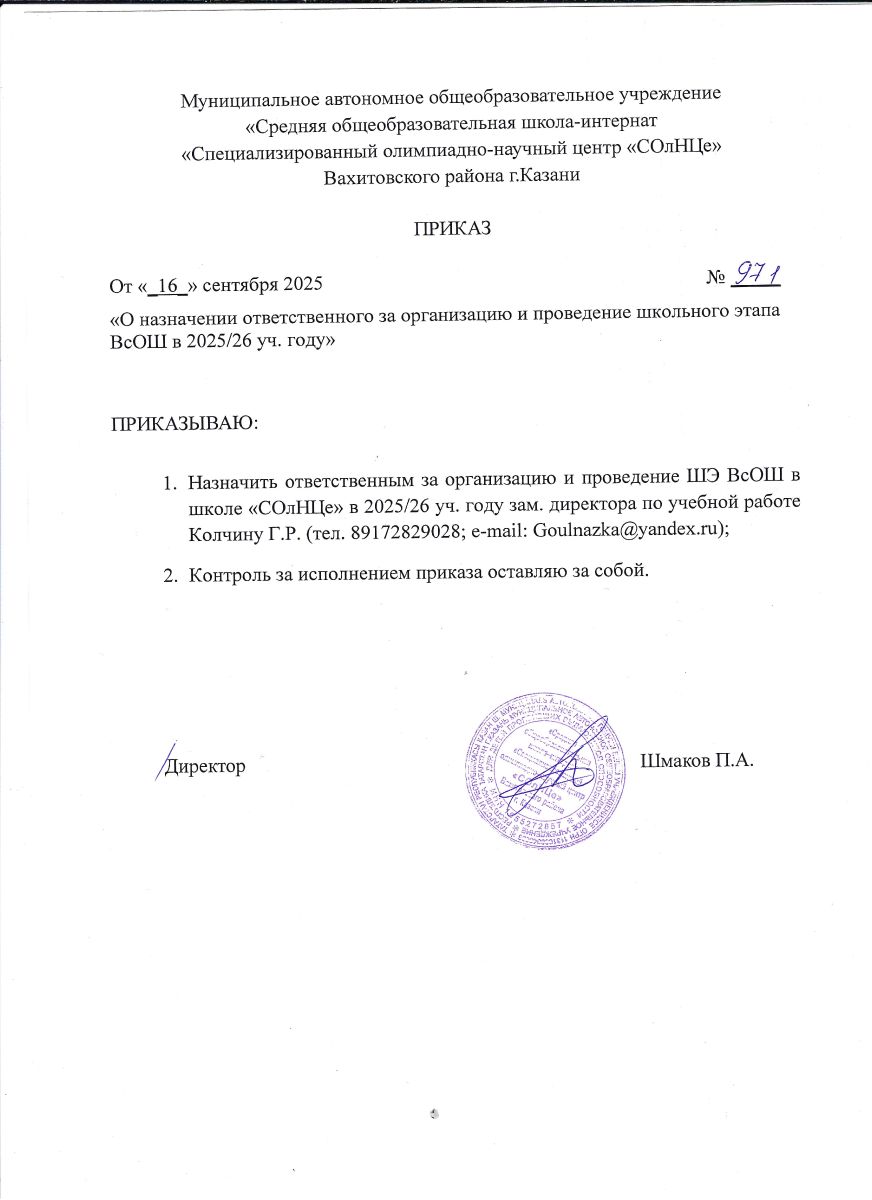 Приказ о проведении школьного этапа.