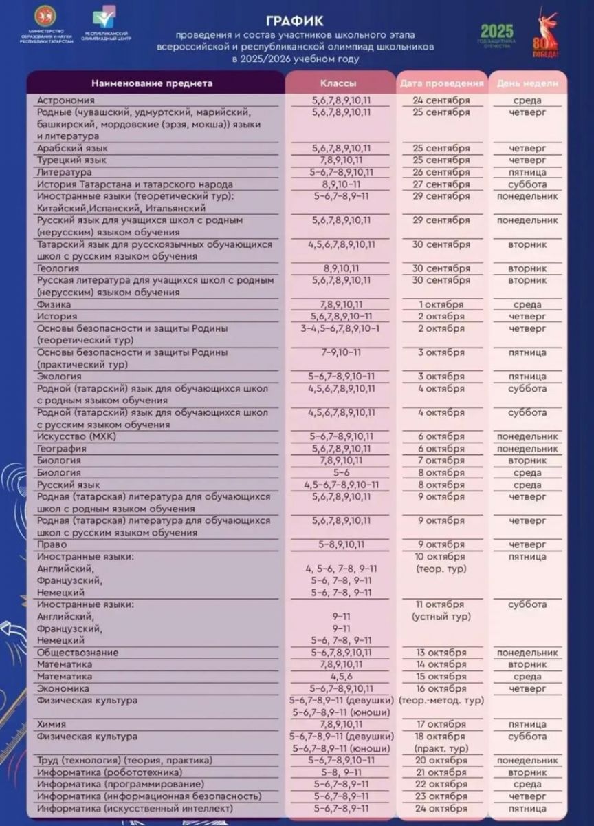 График школьного этапа Всероссийских олимпиад.