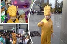 Необычный парад сегодня могли наблюдать жители города в Парке Горького. Дошколята, переодетые в главных героев мультфильмов, были самыми маленькими участниками в праздновании Дня Республики. В шествии «Главный герой» наш детский сад представлял Платонов Артем, в роли Колоска из мультипликационного фильма «Нефтяша и его друзья".