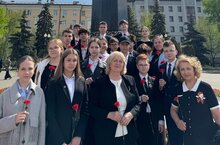 Наши лицеисты приняли участие в митинге и возложении цветов к памятнику Габдулле Тукаю. 26.04.2025