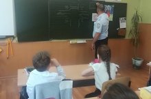 ГИБДД мәгълүматларына күз салсаң, җәйге каникуллар, балалар катнашындагы аварияләр иң күп була торган чор икән. Шундый куркыныч очракларны булдымый калу максатыннан, безгә кунакка инспектор - Сабиров Ленар Рөстәм улы килде. Ул укучыларга юл йөрү кагыйдәләре турында сөйләде, аларның булган белемнәрен тикшереп, әңгәмә оештырды. Инспектор укучыларга җәйге каникулда юлларда сак булырга, юл кагыйдәләрен үтәргә киңәш итте. -