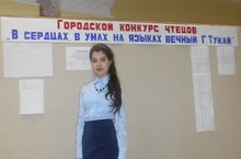 «Күңелләрдә Тукай мәңгелек” дип аталган бәйгенең район күләмендәге туры тәмамланып, Вахитов районы мәктәбе укучылары арасында “Тукай шигырьләрен яттан сөйләү” номинациясендә 1нче урынны алган гимназиянең 8 “А” сыйныфы укучысы Д. Фаекова 29нчы март көнне шул ук бәйгене дәвам итеп, А. Алиш исемендәге Балалар иҗат сараенда шәһәркүләм узган турында катнашып кайтты.