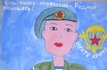 -на втором этаже гимназии разместилась выставка рисунков «Есть такая профессия- Родину защищать»;
