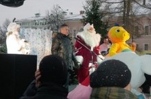 На площадке раскинулся целый городок: новогодняя елка, карусели, батут, праздничная торговля, организовано катание на пони, лошади и верблюде. Новогоднюю программу открыли творческие коллективы районов с песнями и танцами, затем ребята увидели новогоднее действо с участием Деда Мороза и Снегурочки.