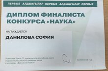 Гимназиябез укучысы Данилова Софья финалист дипломы белән бүләкләнде. -