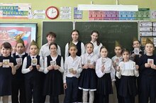 1 сыйныф җитәкчеләренә "Россия бөркетләре" эмблемасы төшерәлгән уникаль папка-сумка тапшырылды.