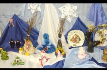 Выставку "Все зимние чудеса рядом" провели учащиеся 4Б класса. Совместно с классным руководителем Шамсутдиновой Р.И. ребята из бумаги, ваты, кусков материи, веточек изготовили фигурки и композиции, посвященные Матушке-Зиме.