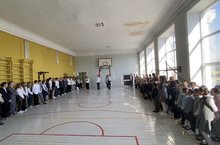 Учебная неделя в Школе №1 началась с выноса государственных флагов РФ и РТ и исполнения гимнов.
