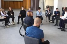 С 1 декабря в нашей школе прошла Декада инвалидов. Специальными гостями на этой неделе были: Миннахметова Мария Николаевна - ведущая "Уроков доброты" по пониманию инвалидности от Городского центра образования, руководитель кинофестиваля "Кино без барьеров". Евгений Владимирович Скрипачев - Актер театра "Угол", автор инклюзивного курса свободного движения и импровизации "Практика движения". На встречах ребята обсуждали вопросы связанные с инвалидностью, проходили тренинги по движению, смотрели и обсуждали видеоролики по теме.