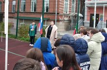 10 октября в гимназии прошла Торжественная линейка, Лучшие ученики гимназии поднимали флаги РФ и РТ под исполнение гимнов всеми детьми.