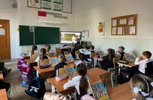 11б класс провёл экскурсию по школе для 1б класса, рассказал о героях Великой Отечественной Войны.