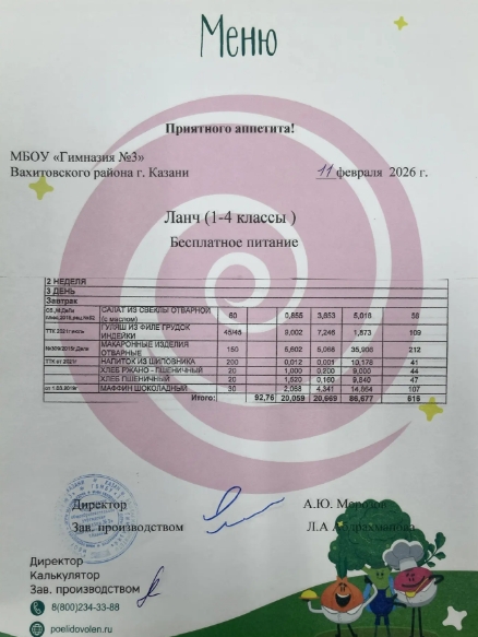 Меню ежедневного горячего питания для обучающихся 1 – 4 классов и 5 – 11 классов