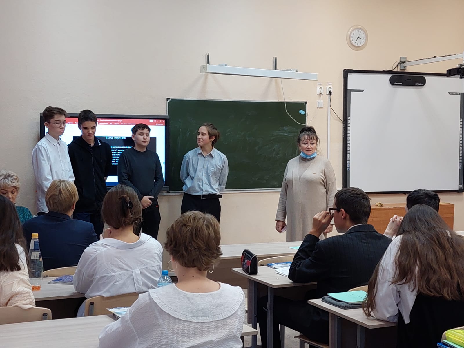 Опубликовано: 19.10.202118 октября 2021г в 8а прошел классный час на тему "О вреде курения". Где школьников ознакомили с ст.303 от 31 июля 2020 о запрете курения в общественных местах и несовершеннолетними никотиносодержащей продукции