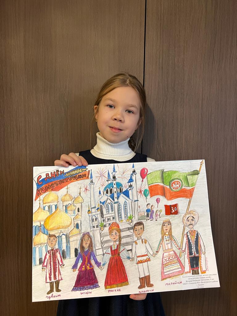 Опубликовано: 03.02.2022В рамках Парламентского урока, ученица 2б класса Желаева Патриция приняла участие в конкурсе рисунков, посвященному 30-летию Конституции РТ. Поддержим ученицу!