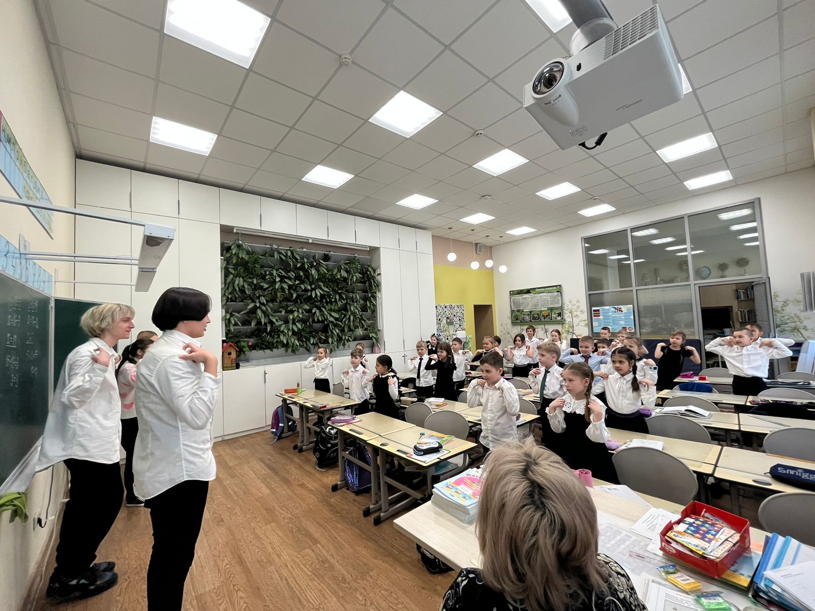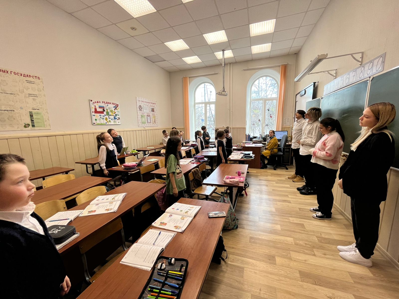 Ученики 2Б класса приняли эстафету от учеников 1А класса и передают ее 5Б классу.