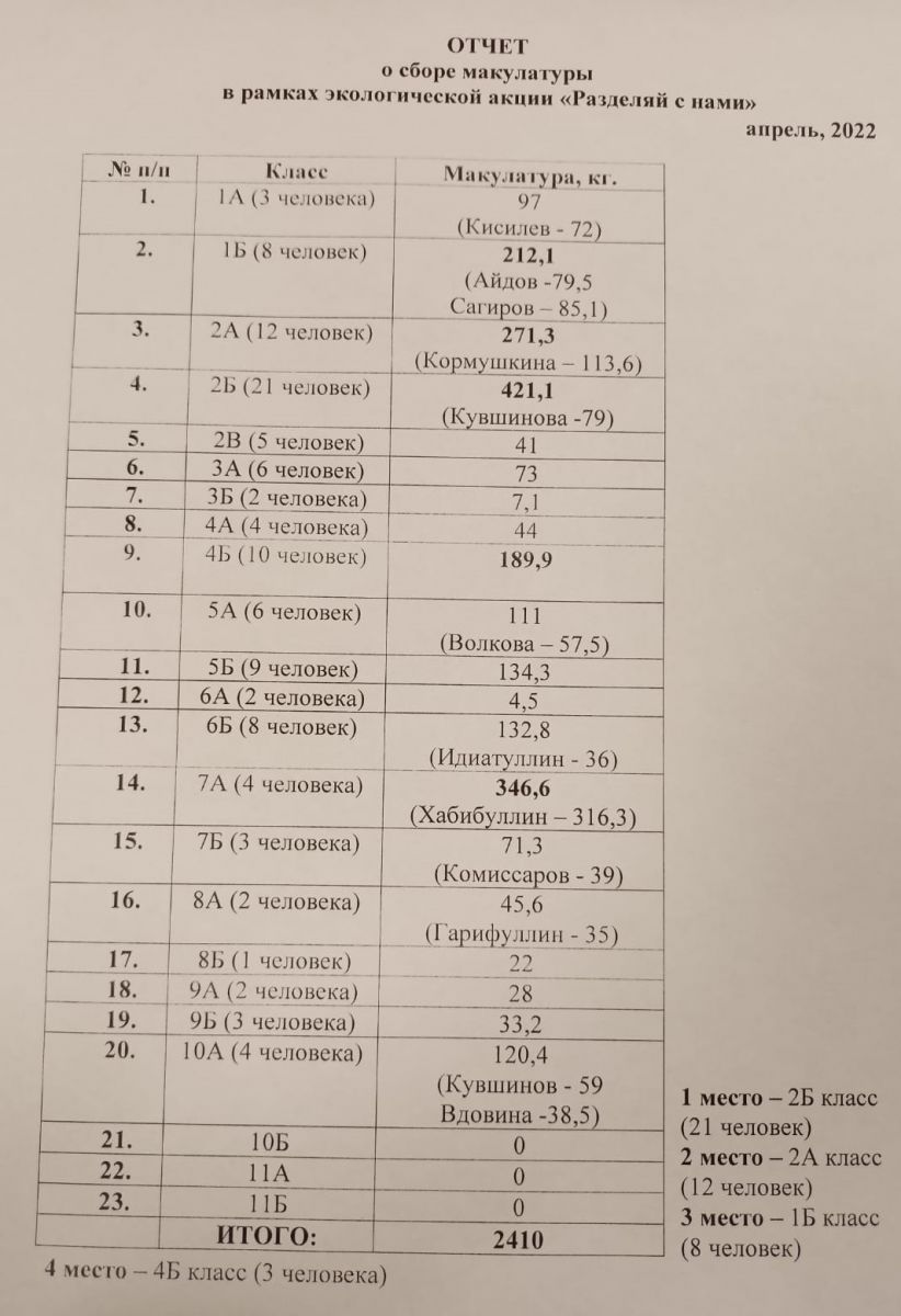 Опубликовано: 03.05.2022Подведены итоги сбора макулатуры в рамках благотворительной акции РТ "Разделяй с нами!".