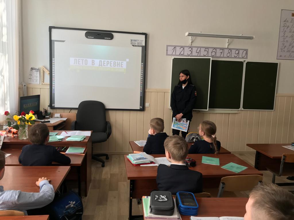 Опубликовано: 20.05.202220 мая 2022 года, для учеников 2б и 4б классов,старший инспектор отдела ГИБДД города Казани капитан полиции Низамиева Г.Х. провела беседу о правилах безопасного поведения на дорогах во время летних каникул.