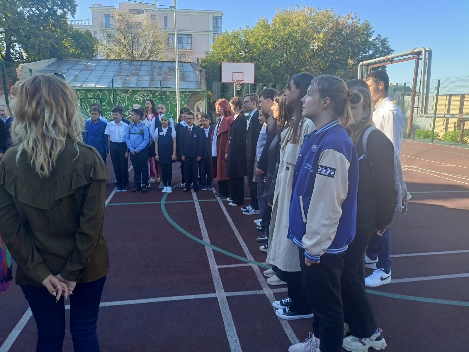 Опубликовано: 05.09.20225 сентября 2022 года в гимназии прошла Торжественная линейка с пением гимнов и поднятием флагов РФ и РТ. Были озвучены планы на неделю и пожелания успехов в учёбе. .jpg)