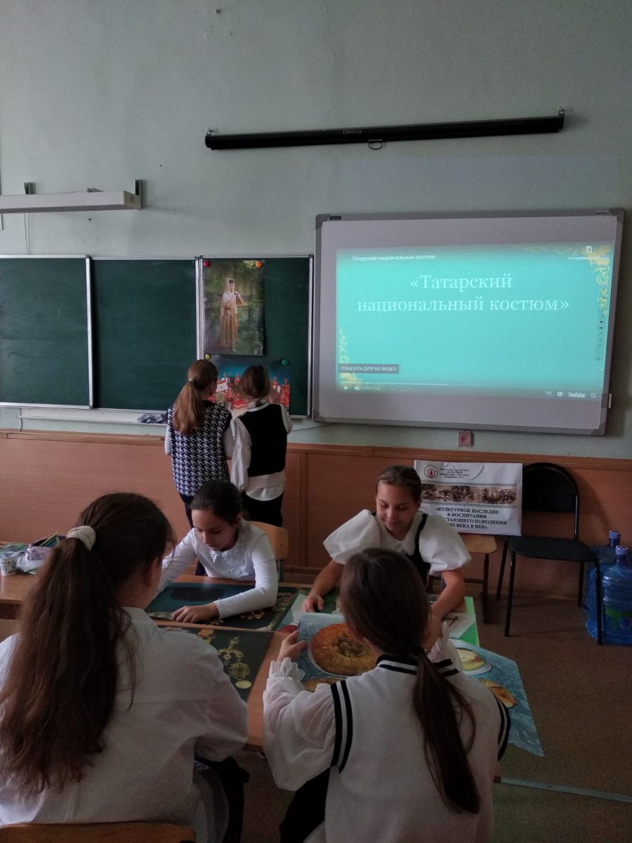 Опубликовано: 27.10.2022В рамках внеурочной деятельности через объединения по интересам "Искусство и литература татарского народа" проведено занятие в 5а классе по теме: "Татарский национальный костюм". Руководитель: Сабирзянова Р.И.