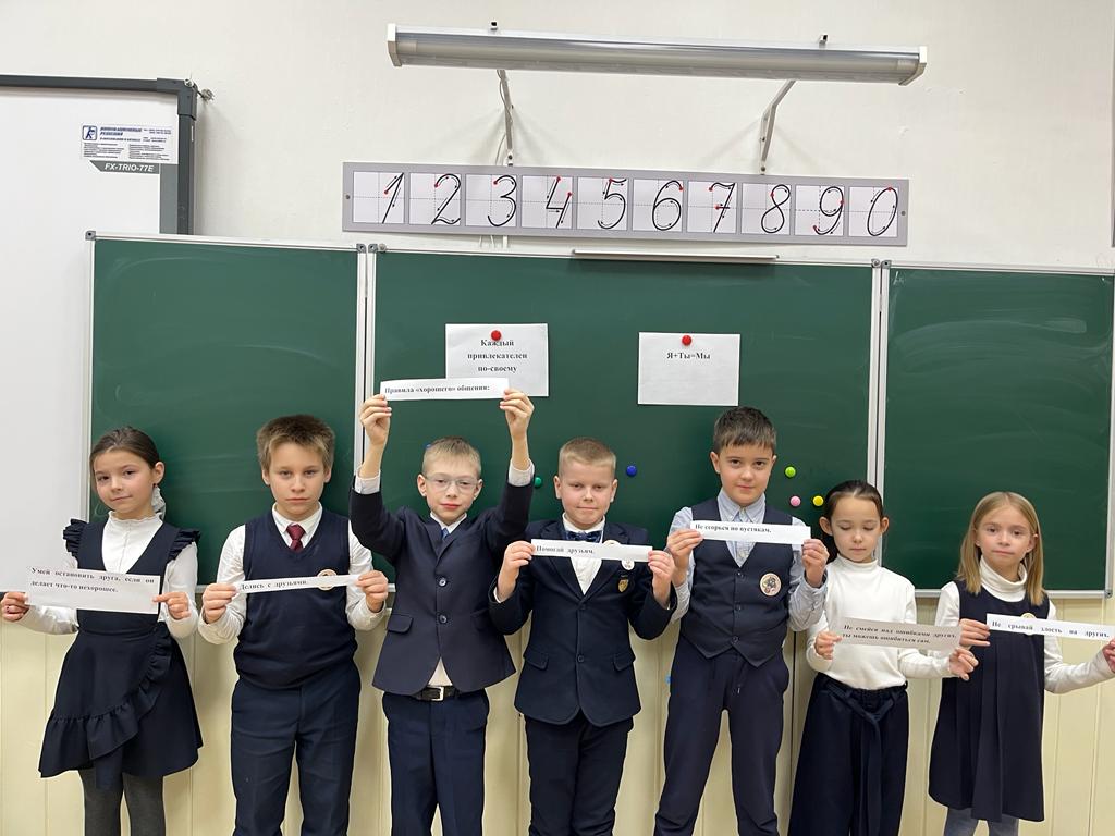 Опубликовано: 28.11.2022В рамках внеурочной деятельности по профилактике асоциальных явлений в 3б классе прошел классный час «Мы вместе». В ходе классного часа дети поделились опытом позитивного взаимодействия, перечислили правила «хорошего» общения.