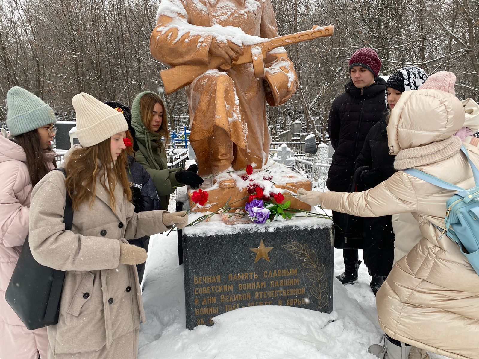 Опубликовано: 12.12.2022В честь дня памяти Неизвестного солдата и Героев России, ученики 9а класса традиционно возложили цветы к памятнику Неизвестного солдата на Арском кладбище и почтили память героев.