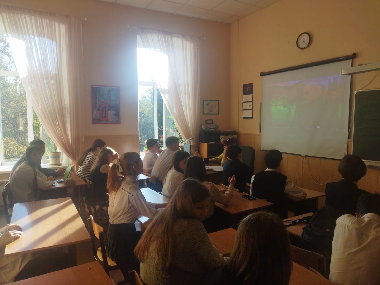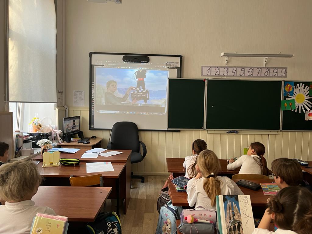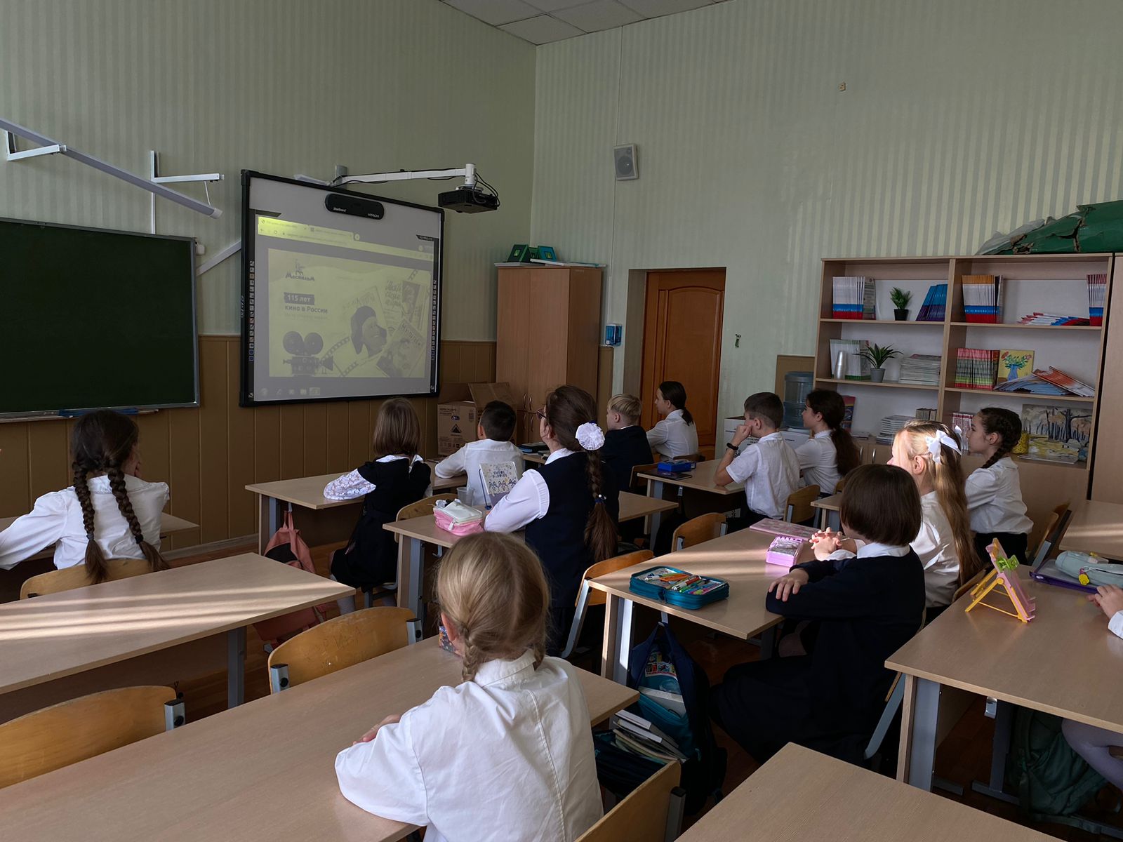 Опубликовано: 16.10.2023Для всех классов Гимназии прошёл Всероссийский внеурочный час "Разговоры о важном" на тему "По ту сторону экрана. 115 лет кино в России!"