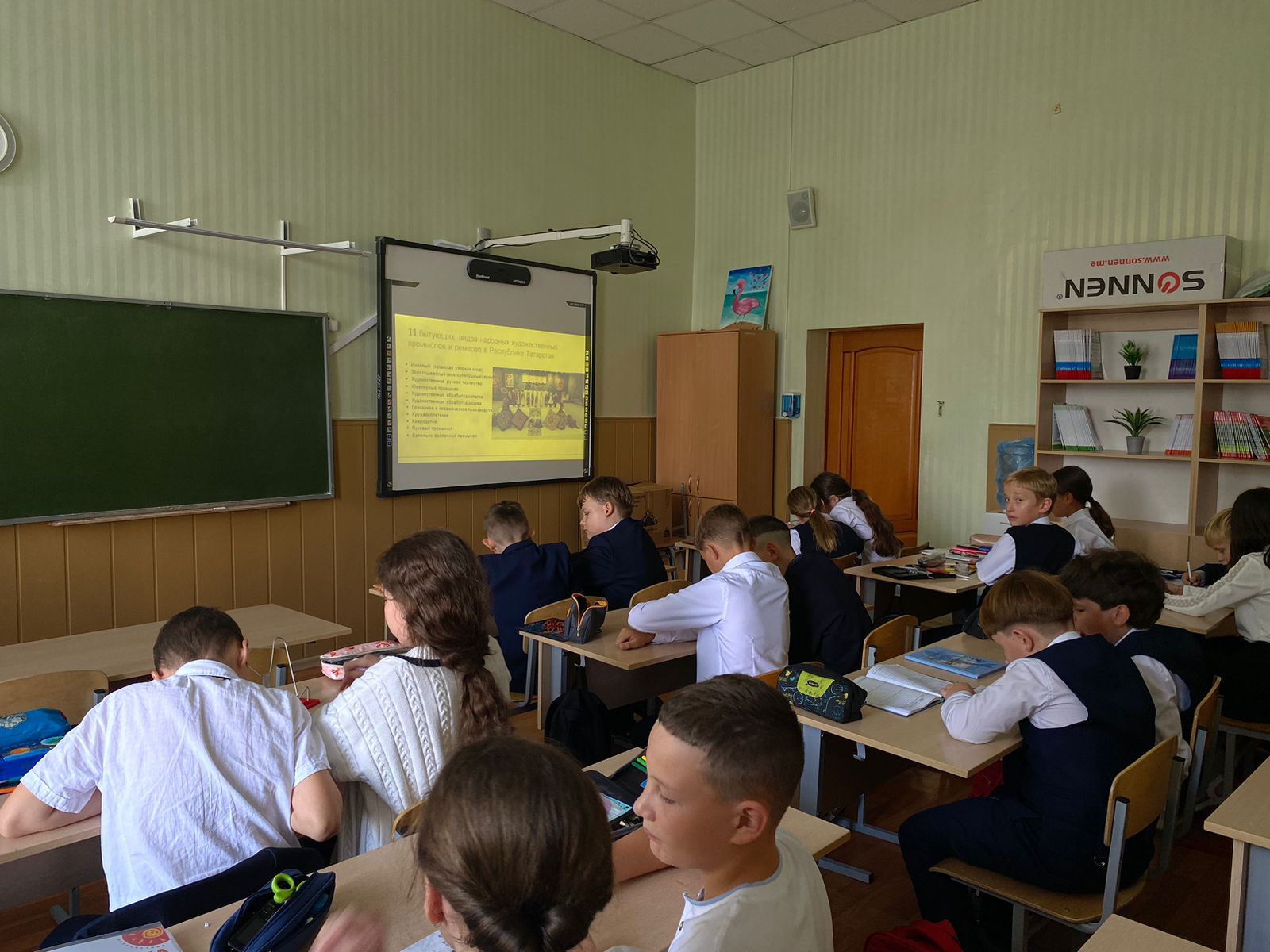 Опубликовано: 05.09.2023В рамках Года национальных культур и традиций в 4 в классе прошло занятие « Народные художественные промыслы Республики Татарстан»
