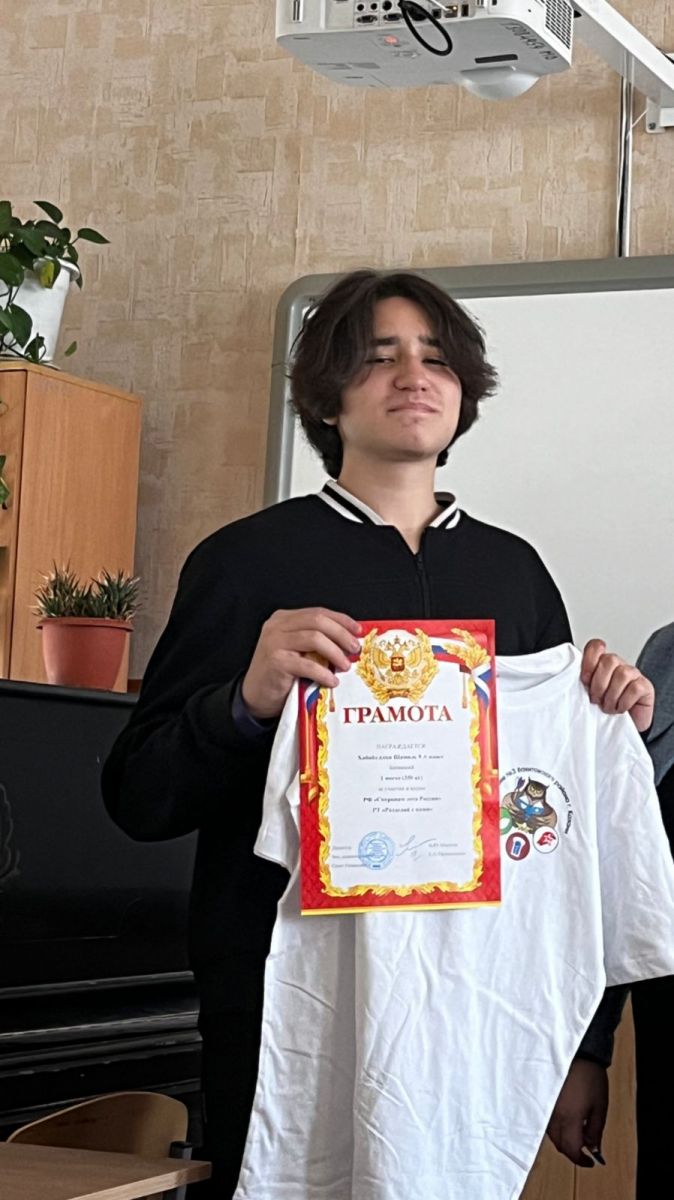Опубликовано: 26.04.2024Шамиль Хабибуллин занял 1 место по сбору макулатуры. Получил грамоту и футболку с эмблемой Гимназии