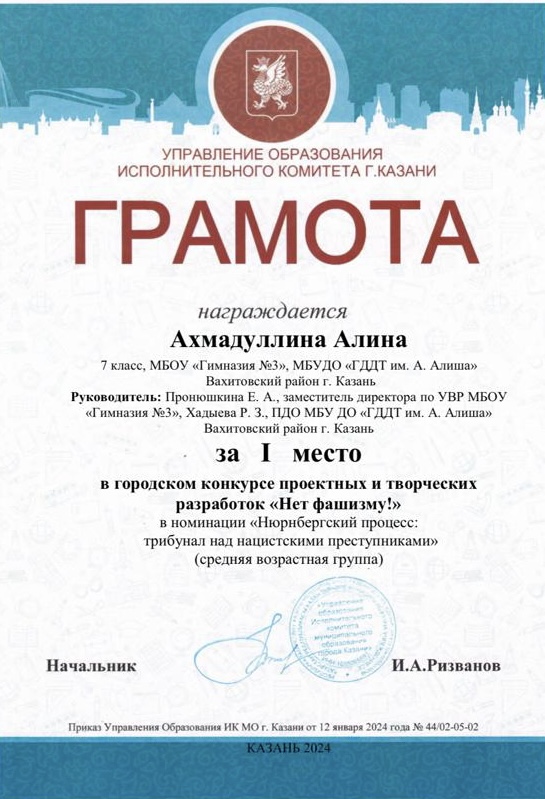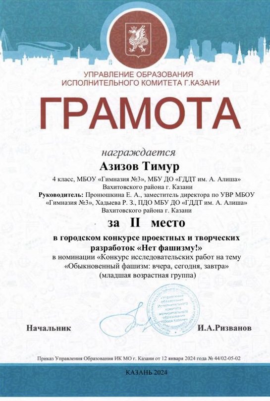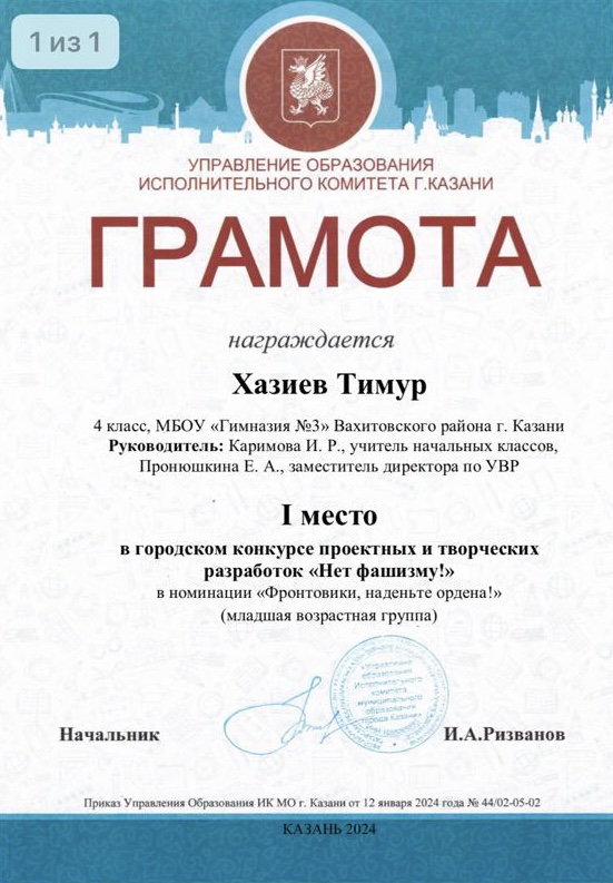 Муниципальное бюджетное общеобразовательное учреждение «Гимназия №3» Вахитовского района г. Казани