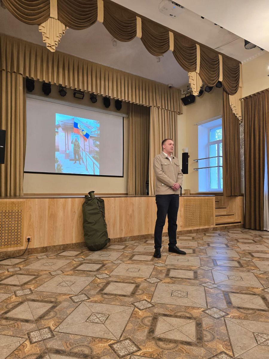 Опубликовано: 28.04.2025Встреча с выпускниками гимназии участниками СВО Александром Железновым и Никитой Шестовцом.