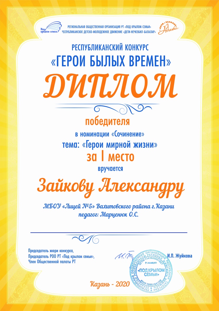 Ученик 7Б класса – Зайков Александр принял участие в номинации «Герои мирной жизни». Он написал сочинение о своей прабабушке. Организаторы и жюри высоко оценили работу – 1 место.
