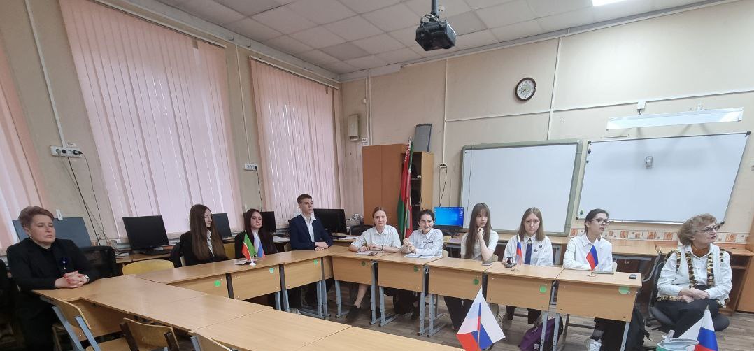 Сегодня 15 мая учащиеся 8в и 8б классов провели телемост «Диалог о культурной памяти» с историко-патриотическим клубом «Памяти достойны» школы №14 имени М.С. Гриневича (Республика Беларусь). Это событие стало символом единства поколений и культур, соединившим две страны общей историей.