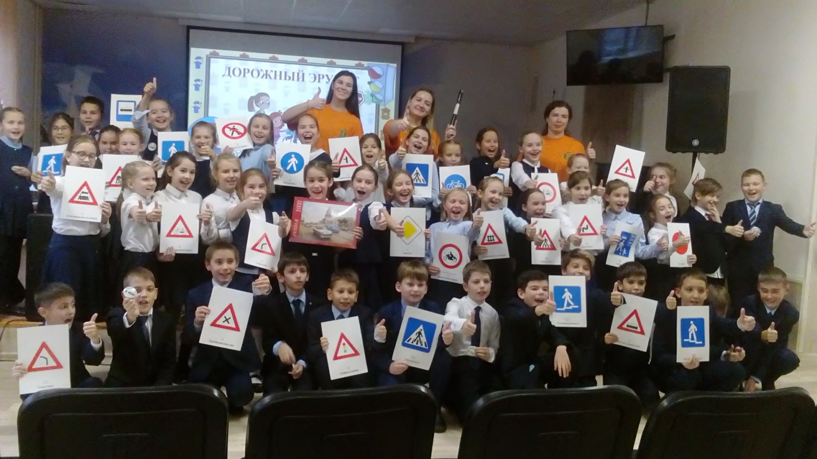 Сегодня в лицее прошёл урок дорожной безопасности "Дорожный эрудит" для учащихся 3-х классов совместно с работниками Центра детского творчества . Ребята разделились на две команды и приняли участие в познавательной викторине на знание правил дорожного движения. Борьба за победу была очень жаркой, в итоге победила сильнейшая команда. Никто из участников без приза не остался.