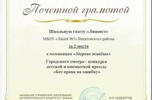 В городском смотре-конкурсе детской и юношеской прессы «Без права на ошибку» школьная газета «Лицеист» заняла 2 место в номинации «Здорово живёшь».