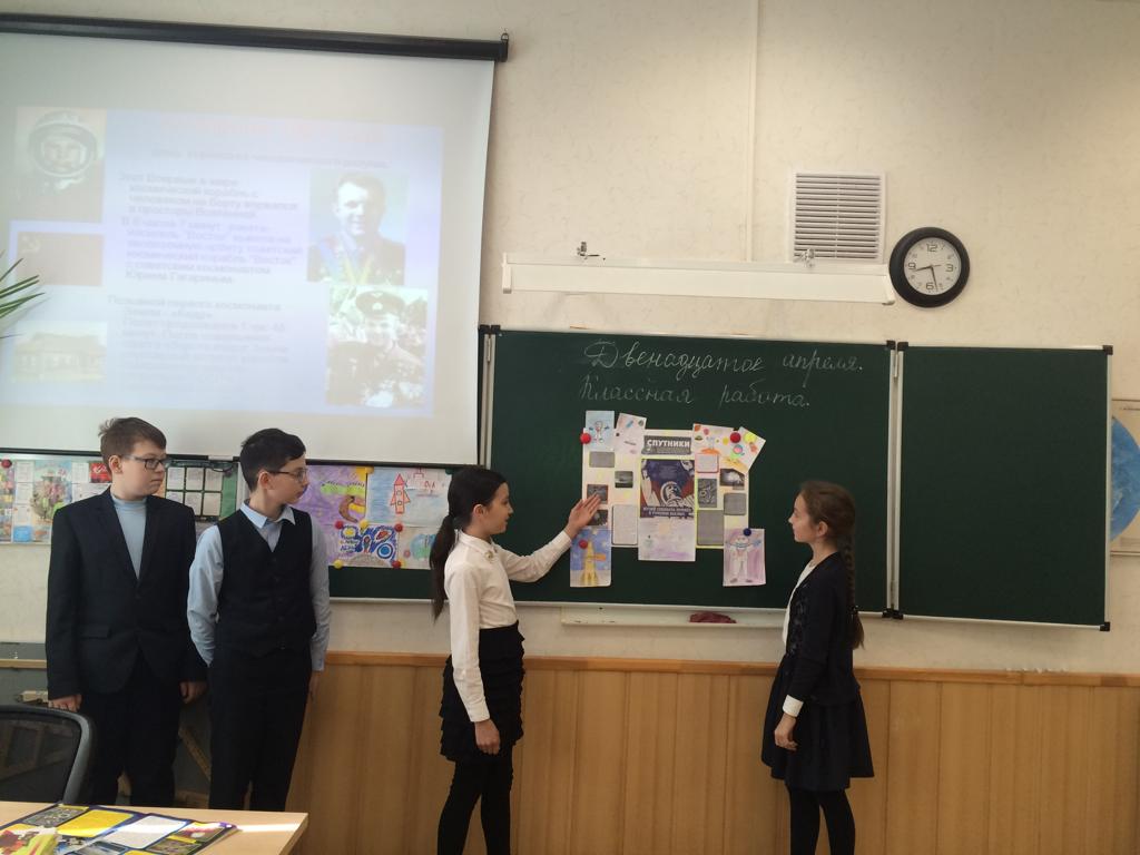 12 апреля в честь дня космонавтики в лицее прошли классные часы. В 5а классе была проведена космическая викторина, 8в путешествовал по космической станции, а 4а